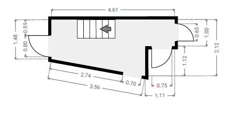 TOTALE OPPERVLAKTE : 21.74 m² | WOONRUIMTE : 21.74 m² | KAMER(S) : 4