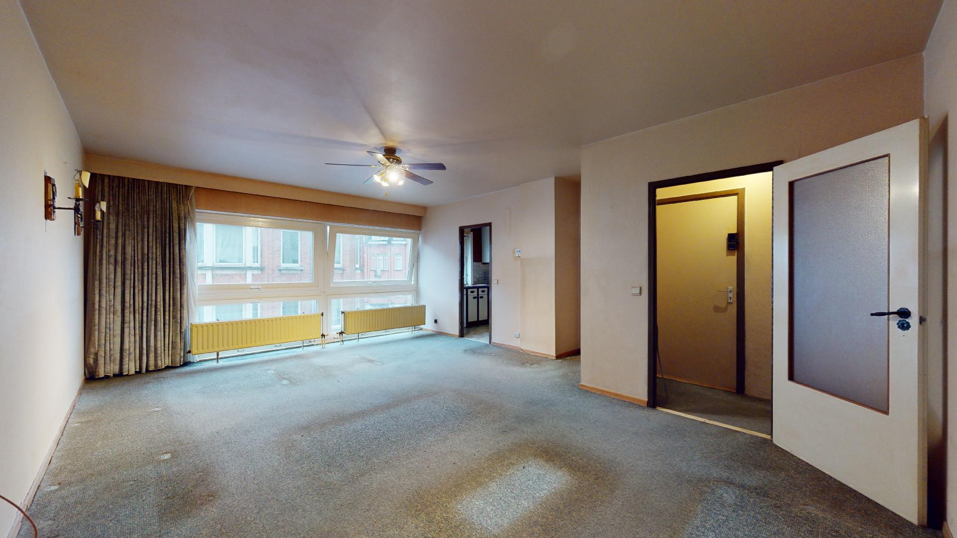 Appartement 3 chambres à rénover. Il y a possibilité de placer une deuxième salle de douches. Excellente répartition des pièces de jour et de nuit.