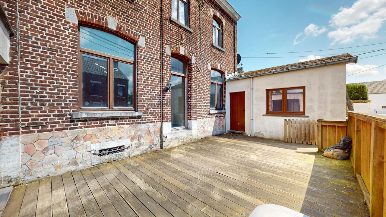 Située à 5min en voiture de la E411, entre Namur et Bruxelles, By the Way vous présente cette charmante maison de +/- 159m2 (selon PEB), avec terrasse et garage.Composition : Au rez-de-chaussée, grande cuisine semi-équipée de +/- 25m2 avec puits de lumière, WC séparé, séjour/salle à manger de presque 40m2 (actuellement 2 pièces séparées), cellier/réserve. Carrelage sur toute la surface placé en 2004. Au 1er étage, 2 chambres de +/- 12m2 et 15,5m2 et une salle de bains avec WC et espace buanderie. Plancher sur toute la surface placé en 2010. Au 3ème étage, combles de +/- 35,5m2 aménagés en 2014 en tant que troisième chambre et dressing. Grande terrasse de +/- 33m2 au niveau des pièces de vie, orientée au Sud-Ouest. Remise/atelier et garage fermé de part et d'autre de la terrasse. Caves au sous-sol. PEB F. Electricité non conforme. Divers : chaudière au mazout de 2004 (cuve de moins de 3000 litres), châssis double vitrage récents au 1er étage (2018), précompte immobilier de 649€. Ces informations sont données à titre indicatif et non contractuel.