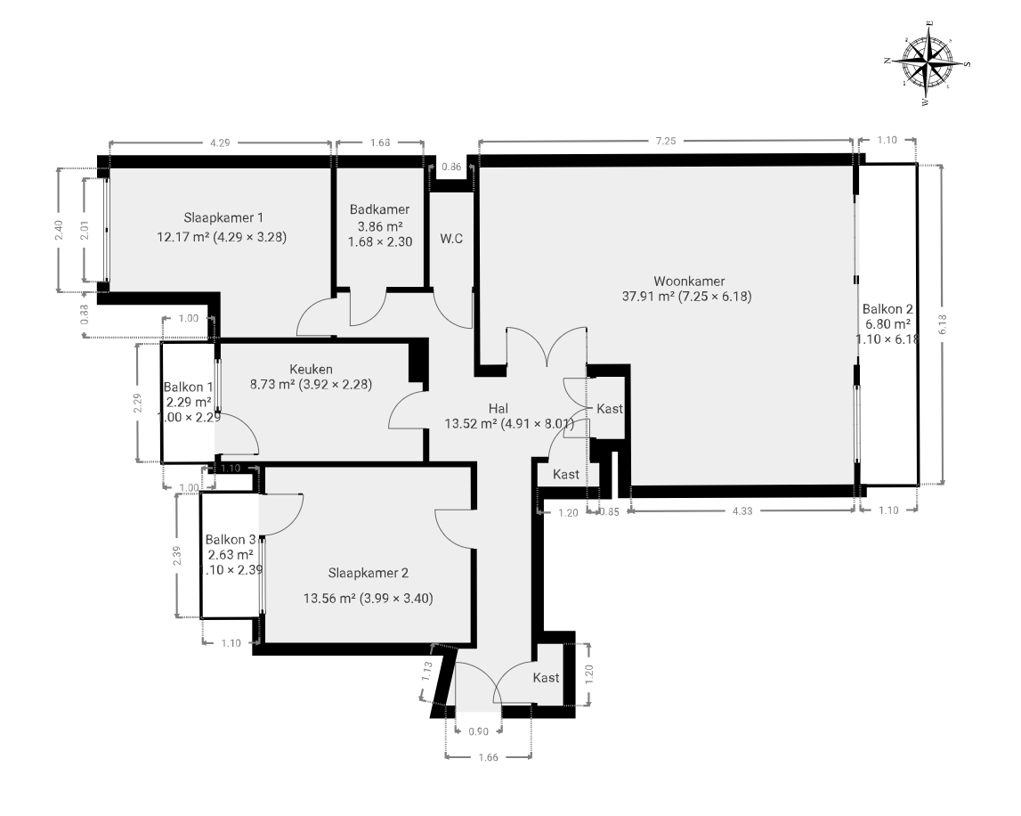 TOTALE OPPERVLAKTE : 104.78 m² | WOONRUIMTE : 93.07 m² | kAMERS : 10