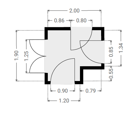 La surface totale résulte de l’addition de la surface intérieure (c’est à dire calculée depuis l’intérieur des murs extérieurs) et des surfaces externes (balcons,terrains, jardins..).